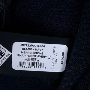 RAG & BONE Mens Shirt XL Navy Black Snap Button Up Knit AVERY HERRINGBONE $250