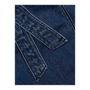 Mia is a high-rise fit jean with a relaxed, tapered leg in a full length. Crafted from a rigid fabric in Vince, a medium deep indigo wash. Features slash pockets and snaps on the back. Zip fly.