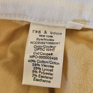 RAG & BONE Nina High-Rise Cigarette White Ankle Jeans Size 32