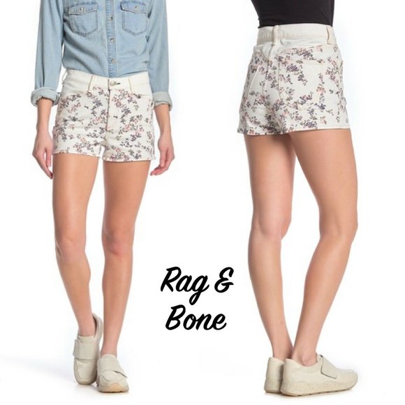 RAG & BONE ELLIE Pink Floral Print High-Rise Twill Shorts Western White