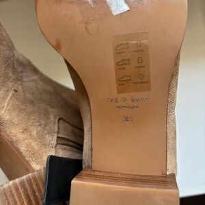 RAG & BONE Rover Zip Mid Heel Booties ALMOND Block Sz 38.5/8.5