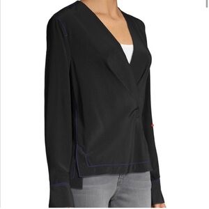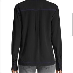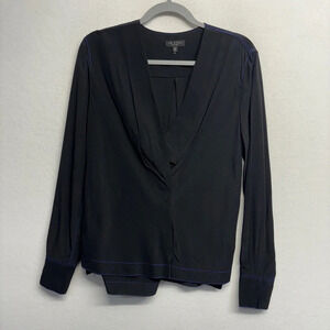 RAG & BONE Shields Silk Drape Front Long Sleeve Blouse M Black Blue Stitching