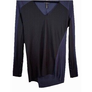 RAG & BONE Sweater Top S Blue Black Extra Fine Merino Wool Knit Long Sleeve