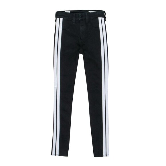 RAG & BONE Sz 32 Mito Black High Rise Skinny Jeans with White Racing Stripes
