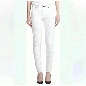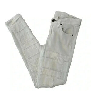 RAG +BONE TATTERED & PATCHED WHITE SKINNY JEAN SIZE 25