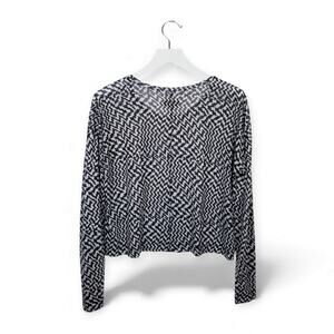 RAG & BONE Top Black & White Crop Round Neck Tee Long Sleeve - Size Small