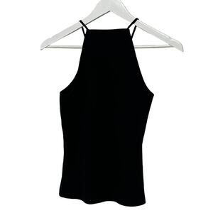RAG & BONE WOMENS SMALL IRINA HIGH NECK STRETCH JERSEY KNIT TANK TOP BLACK