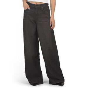 Brand New Color: Washed Black waist rise: 12.5in, whiskered detail, belt loops, embroidered brand logo accent, denim design, fabric provides stretch regular length, wide leg, 5 pocket style high rise waist zip fly with button closure inseam: 33in, taken from size 27 cotton/polyester/elastane imported machine wash