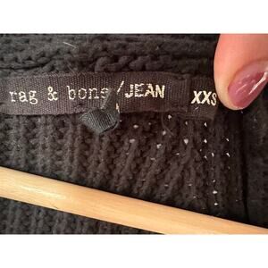 Elevate your wardrobe with this stylish Rag & Bone black V-neck knit sweater. Perfect for layering or wearing on its own, this sweater offers both comfort and sophistication. The classic black color makes it a versatile addition to any outfit.