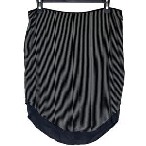 Women’s Madison Black and White Striped Layered 100% Silk Pencil Skirt