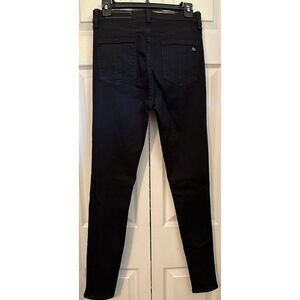 Upgrade your wardrobe with these designer RAG & BONE Women's Size 27 Yuki High Waist Skinny Jeans In Coal Bar Split Hem. The solid black color and classic style make them a perfect fit for any occasion. The denim fabric type and cotton blend material with stretch feature ensure a comfortable and flattering fit.
