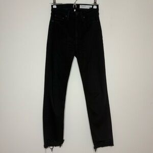 RAG & BONE Wren High Rise Slim Straight Raw Hem Black Distressed Jeans