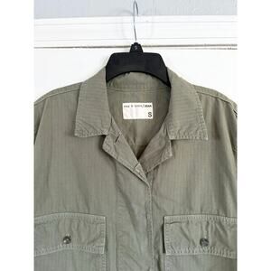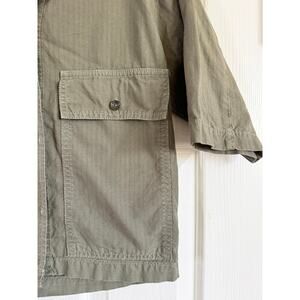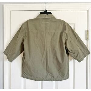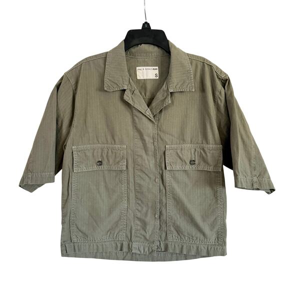 Description: Straight fit. Patch front pockets. Elbow length short sleeves.