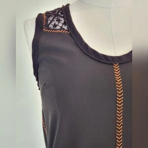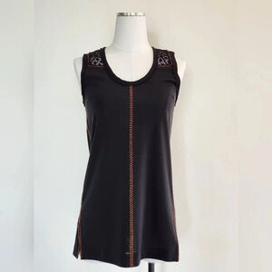 Rag & Bone tanktop in size extra small. This beautiful shirt has a scoop neck, lots of brown sienna stitching, and a lace back. At each hip there's small slits, shoulders are lace, and hem around neckline is raw.