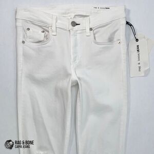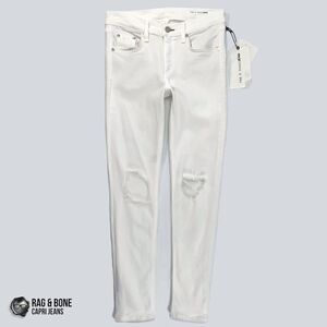 RAG & BONE SKINNY CAPRI JEANS WITH DISTRESSED KNEE HOLES NWT IN BRIGHT WHITE 27