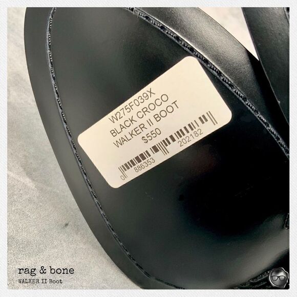 RAG & BONE WALKER II CHELSEA HEELED BOOT IN BLACK CROC EMBOSSED LEATHER SIZE 6.5