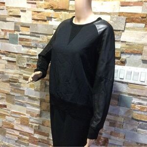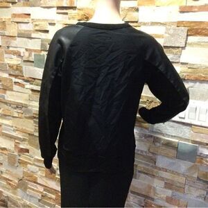 RAG & Bone Women’s lack Leather Sweatshirt Sweater Baseball Sleeve