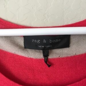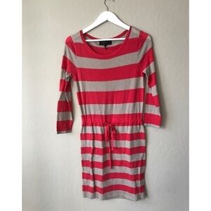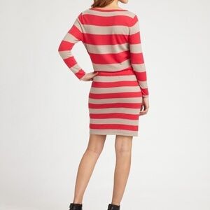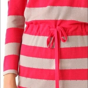 Pointelle detailing punctuates the stripes on this Rag & Bone/JEAN dress, constructed in a soft wool-silk blend. A self-belt cinches the waist and shapes the silhouette. 3/4 sleeves. Lined skirt. Semi-sheer bodice.