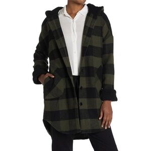 RAG SUPPLY Faux Shearling Hooded Buffalo Plaid Shacket