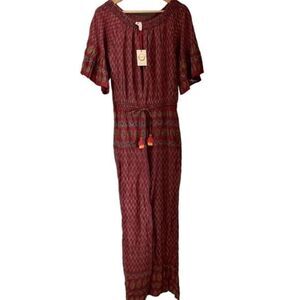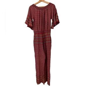 RAGA Avah Paisley Wine Front Pockets Off the Shoulder Jumpsuit Size XS NWT
