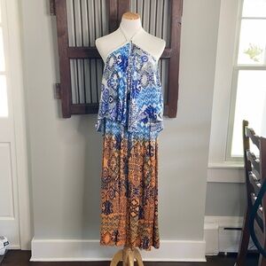 RAGA BLUE UNTIL SUNRISE HALTER POPOVER DRESS SZ LARGE