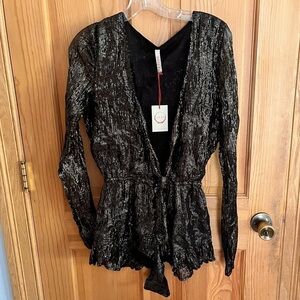 RAGA Fairytale Love Metallic Long Sleeve Romper/Jumpsuit Small NWT Anthropologie