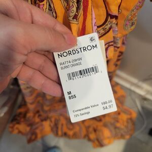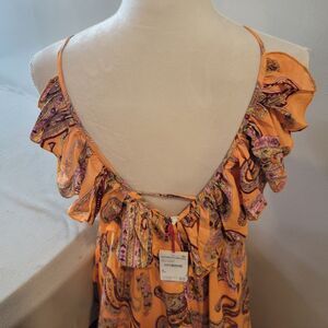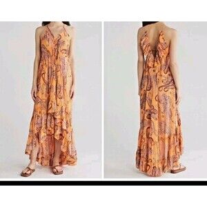 RAGA LEENA HI LOW SLEEVELESS TIERED FLORAL HALTER MAXI DRESS BURNT ORANGE Medium