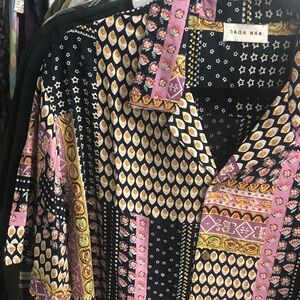 Elevate your casual wardrobe with the RAGA Black and Pink Casual Button Down Shirt, featuring a vibrant mix of geometric and decorative prints. This shirt's lightweight fabric ensures comfort and style, making it perfect for everyday wear.