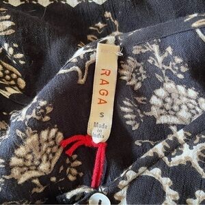 RAGA NWT Boho Print Button Up Long Sleeve Remington Romper Black Tan Size Small