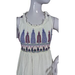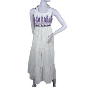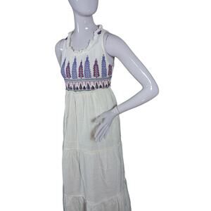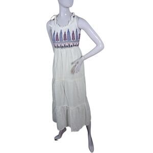 RAGA Panama Cotton Embroidered Tiered Maxi Dress Size Small White Purple