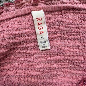 Gently worn purple and pink maxi skirt from RAGA. Has gold threads woven in. The waistband is a little stretched and would fit a size small/medium. The tag shows a size small but the waist runs big so would fit a medium better. The skirt is perfect for a bohemian, boho, hippy, flowy look.