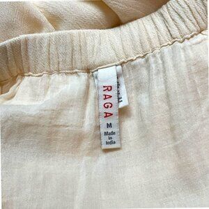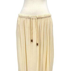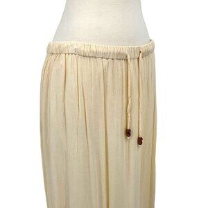 RAGA Size M Maxi Skirt Cream Gauze Flowy Beach Drawstring Tiered Lined Cotton