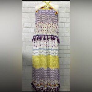 RAGA Women’s Tropic Bird Halter Dress. Purple, yellow. Size LARGE