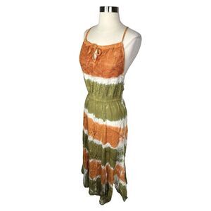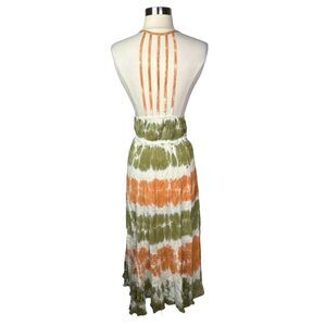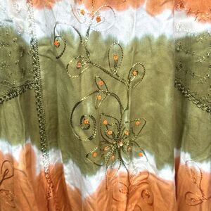 RAGA x Anthropologie Orange & Green Embroidered Tie Dye Maxi Dress - Size Medium