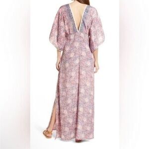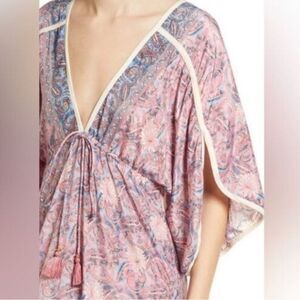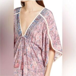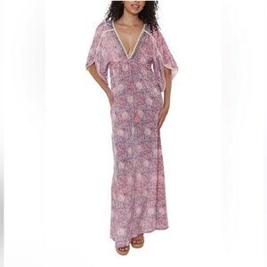 RAGA Baran caftan dress Pink Blue Paisley maxi tassel tie Anthropologie M