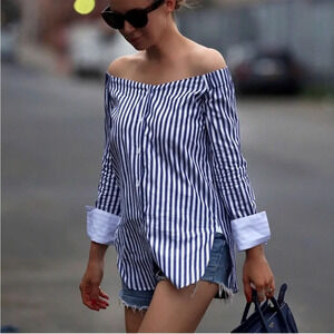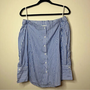 RAG&BONE Kacy Reversible Striped Off Shoulder Poplin Tunic