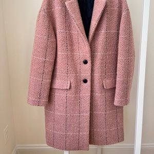 RAG&BONE Size S Estelle Cocoon Wool Blend Check Coat PINK MULTI
