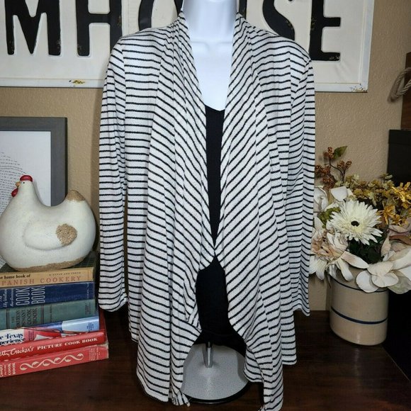 RAGS & COUTURE OPEN FRONT BLACK AND WHITE STRIPE LIGHT WEIGHT CARDIGAN SIZE M