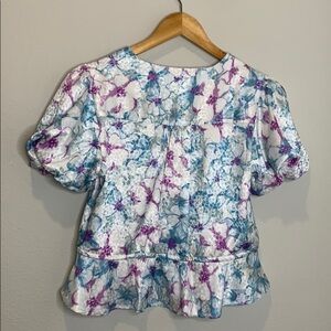 RAHI | Puff-sleeve Peplum Top In Blue Floral