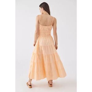 The Railey Dress is a midi length dress designed with an adjustable spaghetti strap. This dress features an elastic waist under bust detail and a tiered full skirt.
