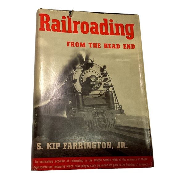 THIS IS A 1943 1st PRINT EDITION OF S. KIP FARMINGTON'S RAILROADING FROM THE HEAD END HARDCOVER WITH DUSTJACKET THIS JACKET IS A LITTLE TORN BUT IN OVERALL GOOD CONDITION