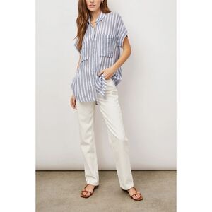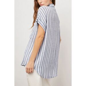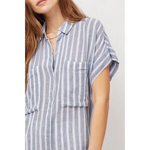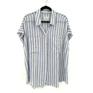 RAILS Blue White Cito Rhone Stripe Linen Oversized Lagenlook Button Up Shirt XL