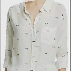 RAILS CHARLI SUNNIES GAUZ WHITE WITH SUNGLASSES BUTTON UP LONG SLEEVE TOP XS