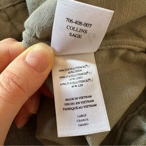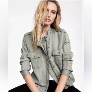 RAILS COLLINS JACKET Linen Blend Sage Military Moto Zip Up Snaps Pockets. -Stand collar, snap epaulets, -long sleeves, snap cuffs -Front zip closure with snap storm placket -Chest snap-flap patch pockets, -drawstring hem Back storm flap, unlined 60% Lyocell, 40% Linen. Please see photos. Anthropologie Gypsy Gypsies Witchy Nomad Whimsical Hippy Hippie Boho Bohemian Comfy Vacation Resortwear beachy boho bohemian Outdoor Military Color: Sage & Green Women’s Size: L Measurements laying flat: Length: 24” - Front | 24” - Back Armpit to Armpit: 22” Length of the sleeve: 24” Condition: Used | Like New *Comes from a smoke and pet free home * Ships Same or next business day * Offers welcome! *Color may be off due to lighting/camera