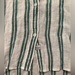 RAILS Charli Button Down Shirt Cordova Stripe Green and White Linen Rayon
