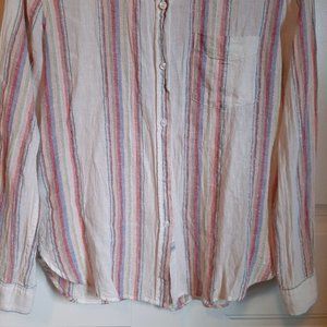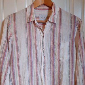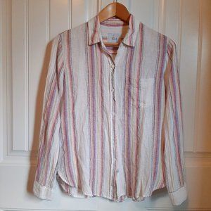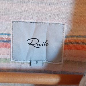 Rails The charli Havana button down shirt. Off-white shirt with rainbow colored with metallic gold vertical stripes. One front pocket. Linen blend. Classic fit Size small (measurements in photos are approx.) In good preowned condition with light wear