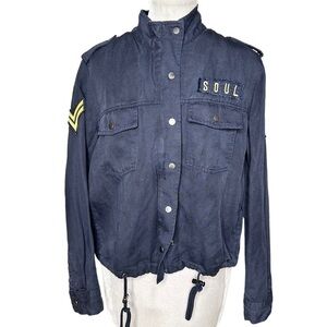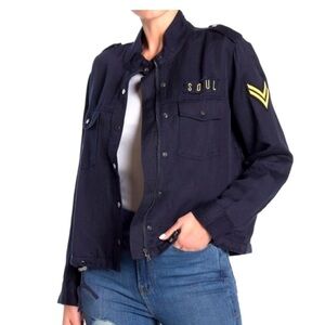 Women's size Small. RAILS Collins Military Jacket in Indigo Soul Patch Button Snap Flap Pocket.