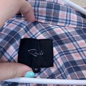 RAILS Connor Plaid Linen Blend Button-up Shirt In Stone Pink White Medium