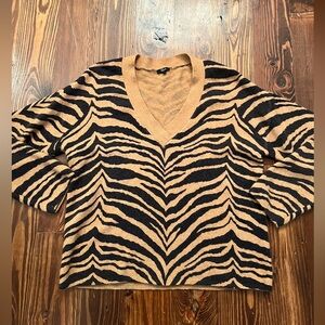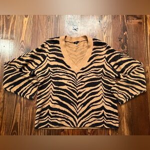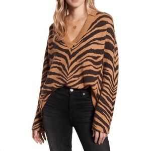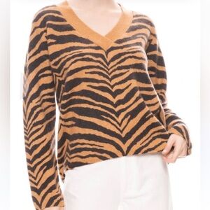 Amazing Rails Tiger Stripe V Neck Cashmere and Wool blends sweater! Perfect for the winter and the holidays! So soft and cozy! Slightly oversized fit! No flaws to note! Sold out online and in Revolve!