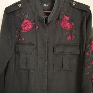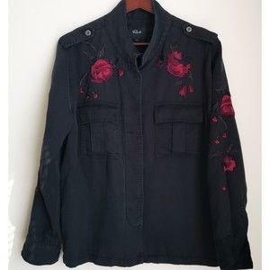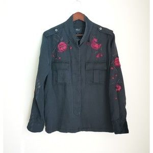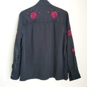 RAILS Elliot Black Embroidered Shacket Floral Rose Boho Button Front Jacket S